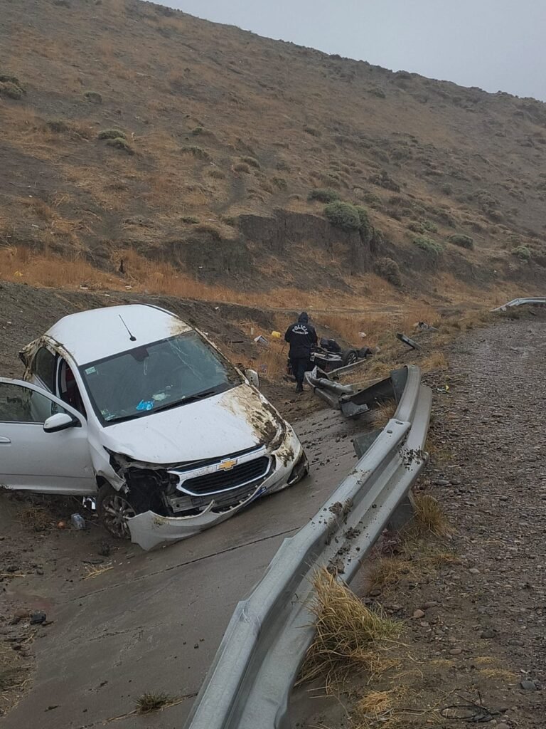 Un accidente de tránsito se registró este domingo al mediodía sobre la Ruta Nacional N°3, en inmediaciones del sector conocido como el Cenotafio, donde dos vehículos colisionaron y uno de ellos terminó volcado.