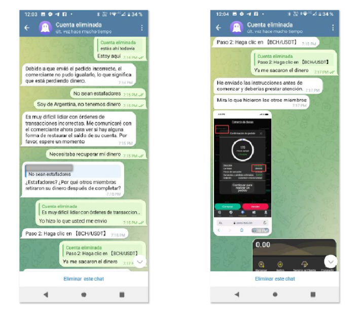 En dicha plataforma “envían sus fondos a cuentas controladas por los estafadores y estas transacciones aparecen como acreditadas en las plataformas junto a sus supuestas ganancias”.