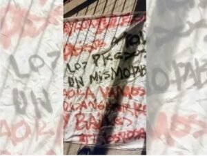 Mientras se espera que la funcionaria presente, junto al gobernador santafesino Maximiliano Pullaro, los resultados obtenidos tras la detención de un ex testaferro de un capo narco, las autoridades locales encontraron este viernes una tela escrita con pintura roja y negra colgando de un puente.