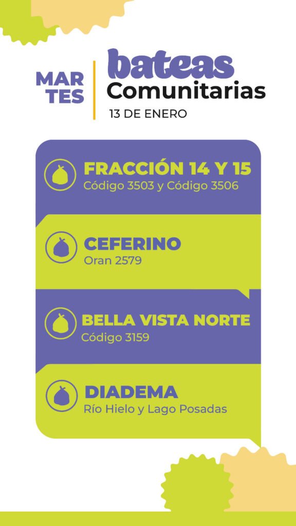 La empresa Urbana, informó que este martes las bateas estarán colocadas en distintos puntos de los barrios Fracción 14 y 15, Ceferino, Bella Vista Norte y