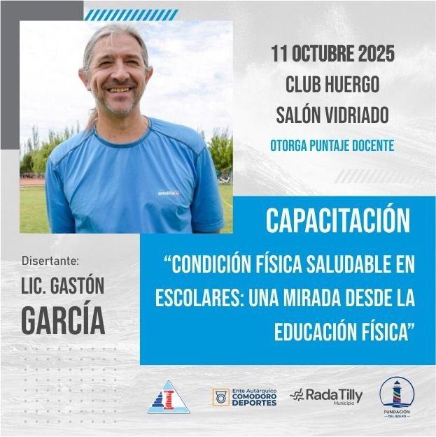 El próximo sábado 11 de octubre tendrá lugar la “Capacitación Condición Física Saludable en Escolares; una Mirada desde la Educación Física” a cargo del licenciado Gastón García. La modalidad es presencial y se desarrollará en el Club Huergo de km 3 en el salón vidriado.