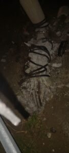 Producto del choque afectó la palma de hormigón provocando roturas del mismo y de cableado. Tras el accidente el hombre decidió abandonar el lugar dejando su vehículo.