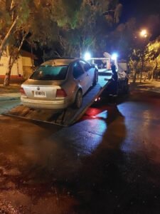 Tras la llegada del personal de tránsito únicamente encontraron el vehículo destrozado contra la palma y por ende secuestraron el mismo para ser trasladado al corralón municipal de Km 4, según indicó a este medio el encargado de turno de tránsito Claudio Gallardo.