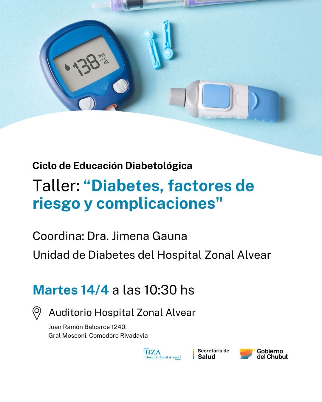 La actividad, titulada “Diabetes, factores de riesgo y complicaciones”, estará a cargo de la Dra. Jimena Gauna y forma parte de una serie de propuestas que la Unidad de Diabetes del hospital desarrollará a lo largo de 2026.