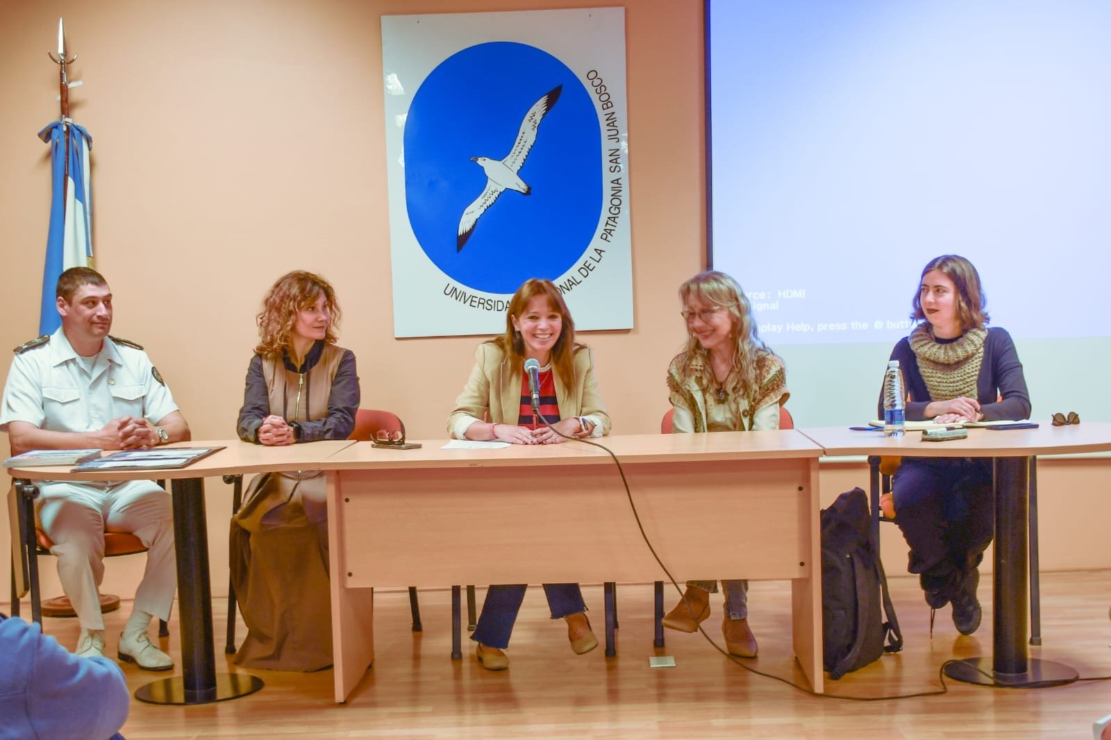 La jornada comenzó a las 10 horas, en el Aula 200 de la UNPSJB, donde se desarrolló el Seminario Científico “34ª Expedición Antártica Búlgara”, organizado por la Facultad de Ciencias Naturales y Ciencias de la Salud. La actividad reunió a autoridades universitarias, representantes oficiales y equipos científicos internacionales que compartieron investigaciones vinculadas a salud humana, geología, arqueología submarina, actividad sísmica, biodiversidad y estudios sobre el impacto solar en la ionósfera antártica.