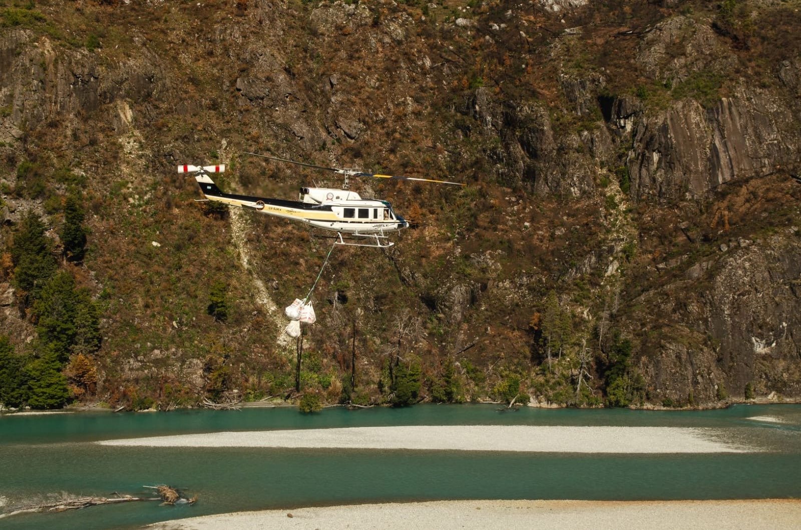 El operativo, realizado días pasados a través de la Secretaría de Bosques provincial, constituye un verdadero hito logístico, técnico e institucional. Dos helicópteros que prestan servicio para la Agencia Federal de Emergencias (AFE), y que recientemente participaron en el combate de los incendios en la comarca, fueron utilizados para concretar esta compleja tarea que demandó una capacidad operativa excepcional y una articulación interinstitucional de alto nivel.