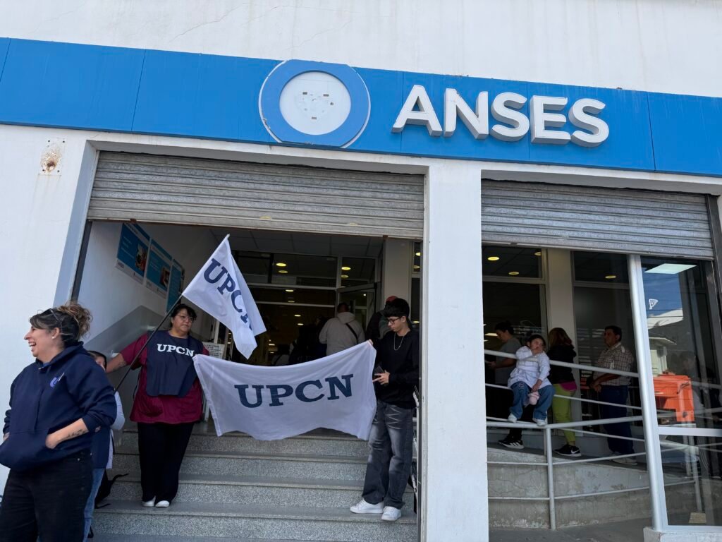 Trabajadores realizaron una medida de visibilización en las oficinas de ANSES en Comodoro Rivadavia ante la preocupación por una eventual reestructuración en la Secretaría de Trabajo de la Nación que podría afectar fuentes laborales.