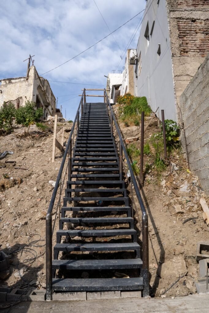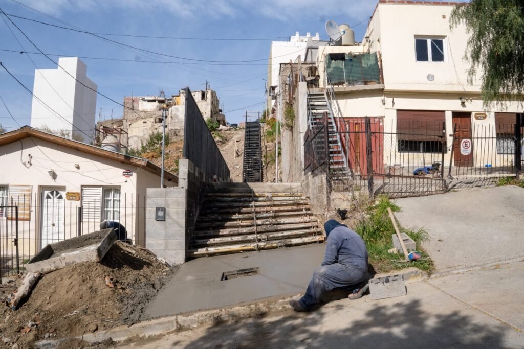 La obra contempló la construcción de un muro de contención, la consolidación de instalaciones sanitarias de cloaca y agua, así como la ejecución de una escalinata de gran desarrollo que salva un desnivel de más de cuatro metros y una nueva vereda de conexión con calle Sarmiento. Los trabajos se suman a otras tareas similares que se han realizado en los barrios Pietrobelli, Ceferino y Moure.