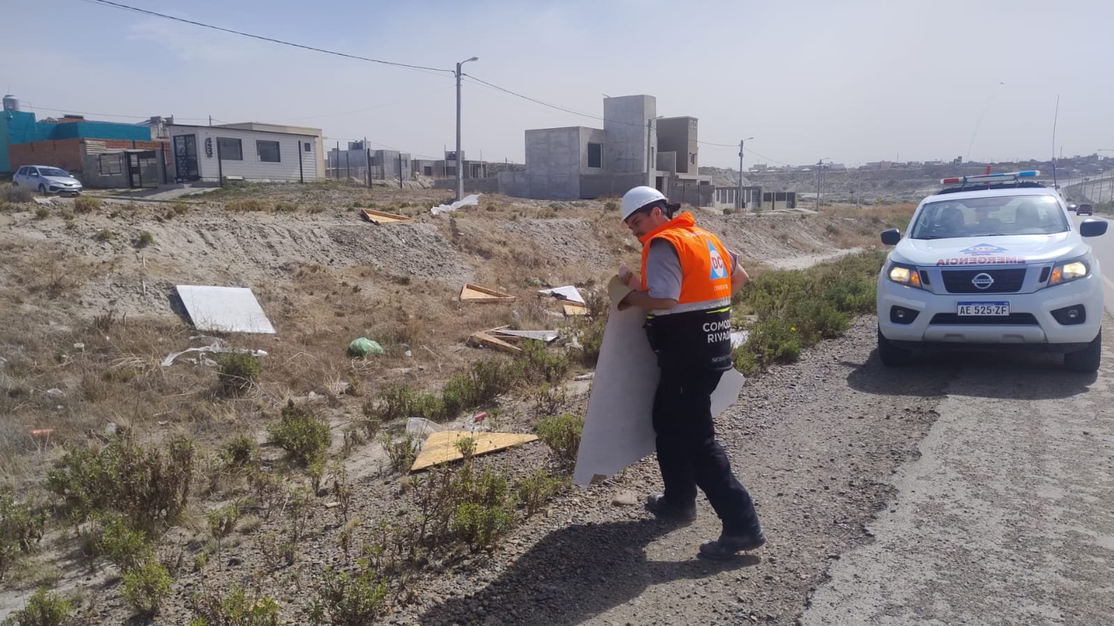 Desde Defensa Civil indicaron que se encuentran trabajando en diversos sectores de la ciudad debido a que el viento derribó postes, carteles, un domo, provocó rotura de chapas y ventanales en viviendas de zona norte y sur.