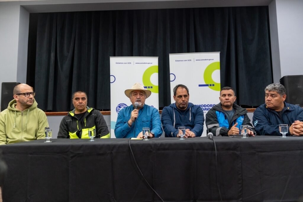 El intendente Othar Macharashvili, acompañado por el vice intendente, Maximiliano Sampaoli; el secretario de Desarrollo Humano y Familia, Ángel Rivas; el Jefe del Cuerpo Activo de Bomberos Voluntarios, comandante José Ayamilla; el geólogo del Departamento de Geología de la Universidad Nacional de Patagonia San Juan Bosco, José Paredes; miembros del Gabinete Municipal, concejales y equipos técnicos provinciales, brindó este domingo pasado el mediodía, una conferencia de prensa donde se informó sobre la activación del Protocolo de Emergencia del SINAGIR (Sistema Nacional de Gestión Integral de Riesgo).