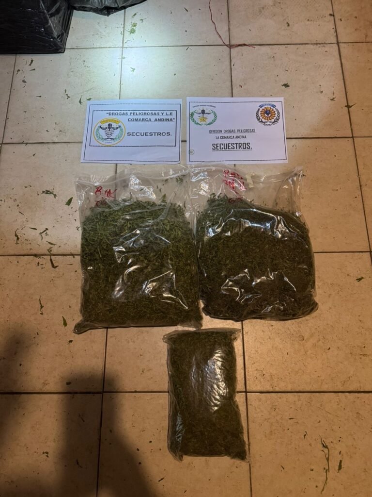 El Gobierno del Chubut, a través de la Dirección de Policía Judicial – Área Drogas Peligrosas y Leyes Especiales Rawson, informó que personal de la División Drogas Peligrosas de El Hoyo llevó adelante un importante operativo en la Comarca Andina, en el marco de una investigación por presunta infracción a la Ley Nacional de Estupefacientes N° 23.737.