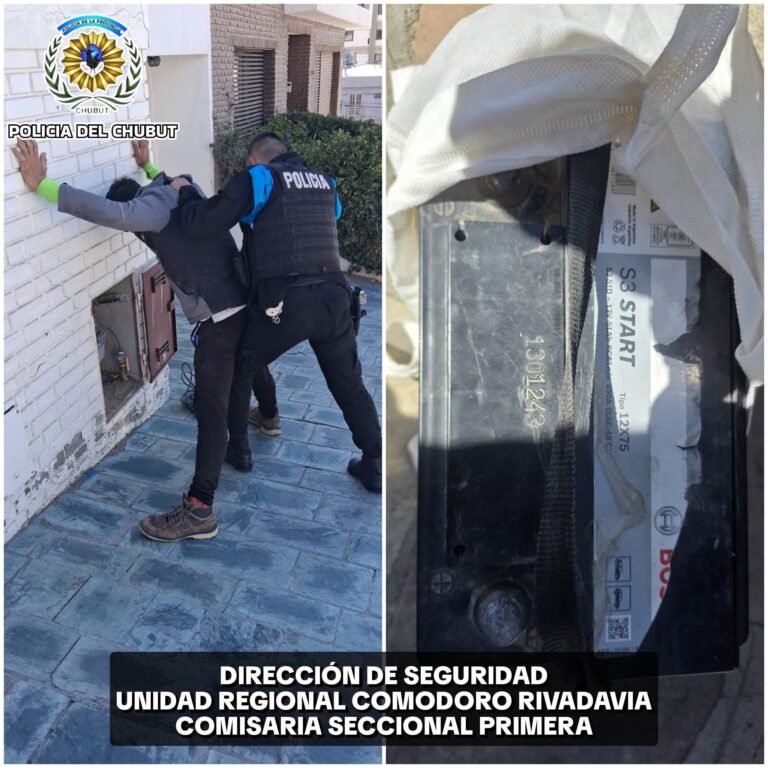 Personal policial intervino en Av. Rivadavia y Chacabuco del Barrio Centro, en virtud de tomar conocimiento por centro de monitoreo que se había comunicado un masculino, dando cuenta que un sujeto había sustraído la batería de su vehículo Fiat 147, color verde, el cual se encontraba estacionado fuera de su domicilio.