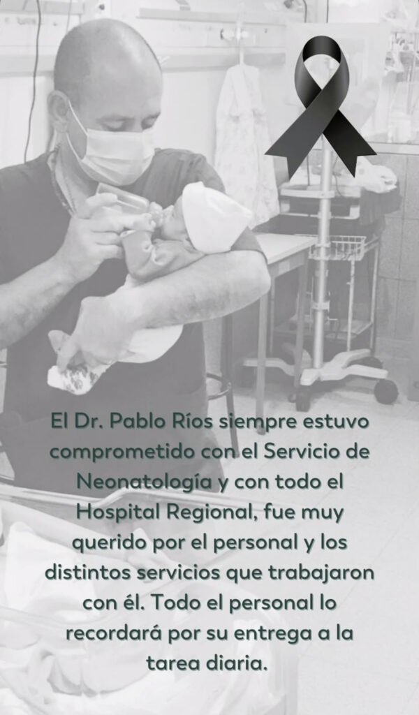A través de un comunicado oficial, sus compañeros de trabajo lo recordaron como un profesional «muy querido» que «siempre estuvo comprometido con el Servicio de Neonatología y con todo el Hospital Regional».