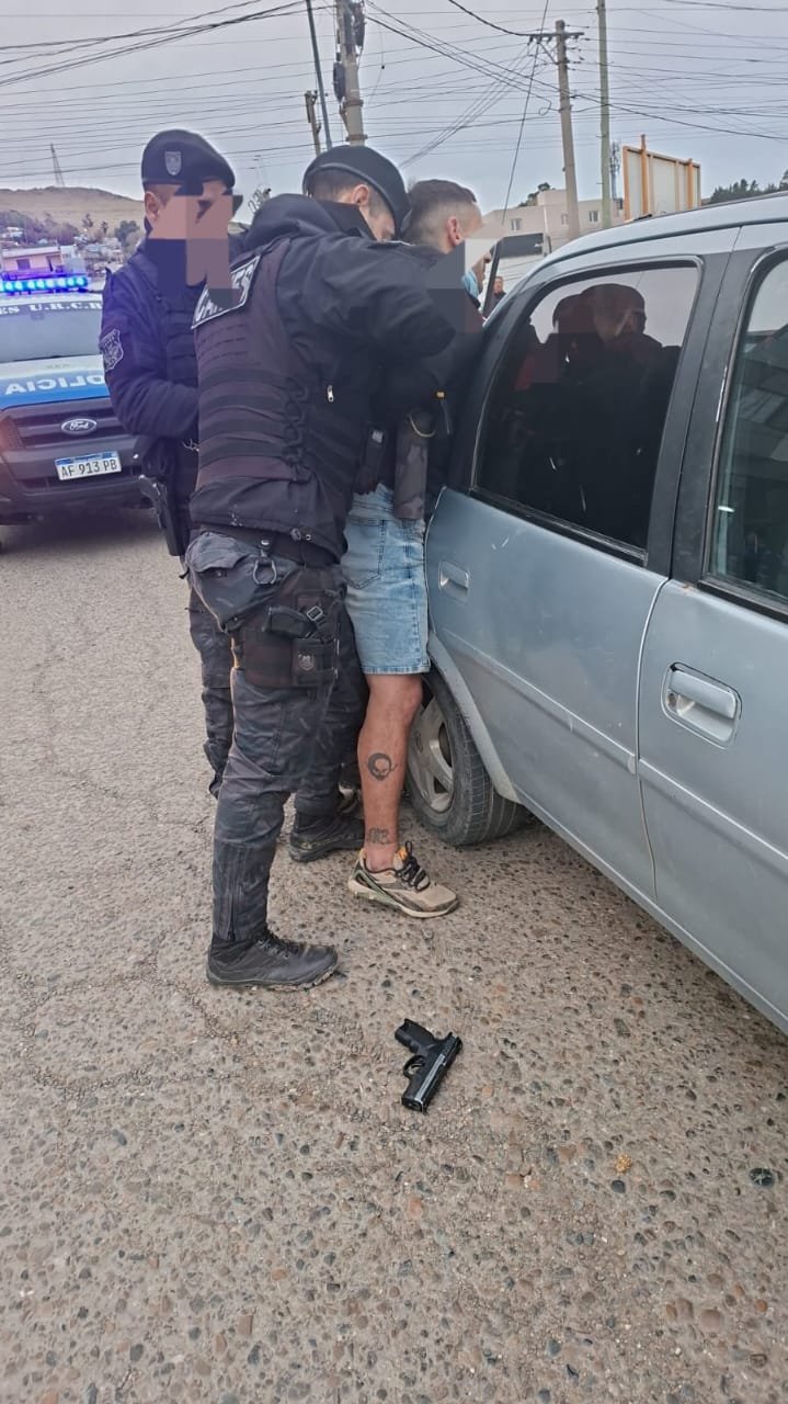 Sucedió en el Pasaje Los Patos del barrio Jorge Newbery. En el palpado superficial a uno de los detenidos hallaron una réplica de arma de fuego.