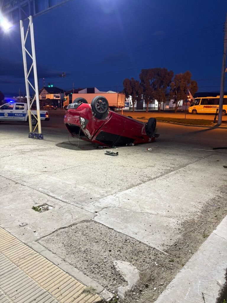 Todo sucedió cuando un joven de 24 años, acompañado de una mujer, volcó con su vehículo Renault Sandero, en circunstancias que podrían haber tenido consecuencias más graves.