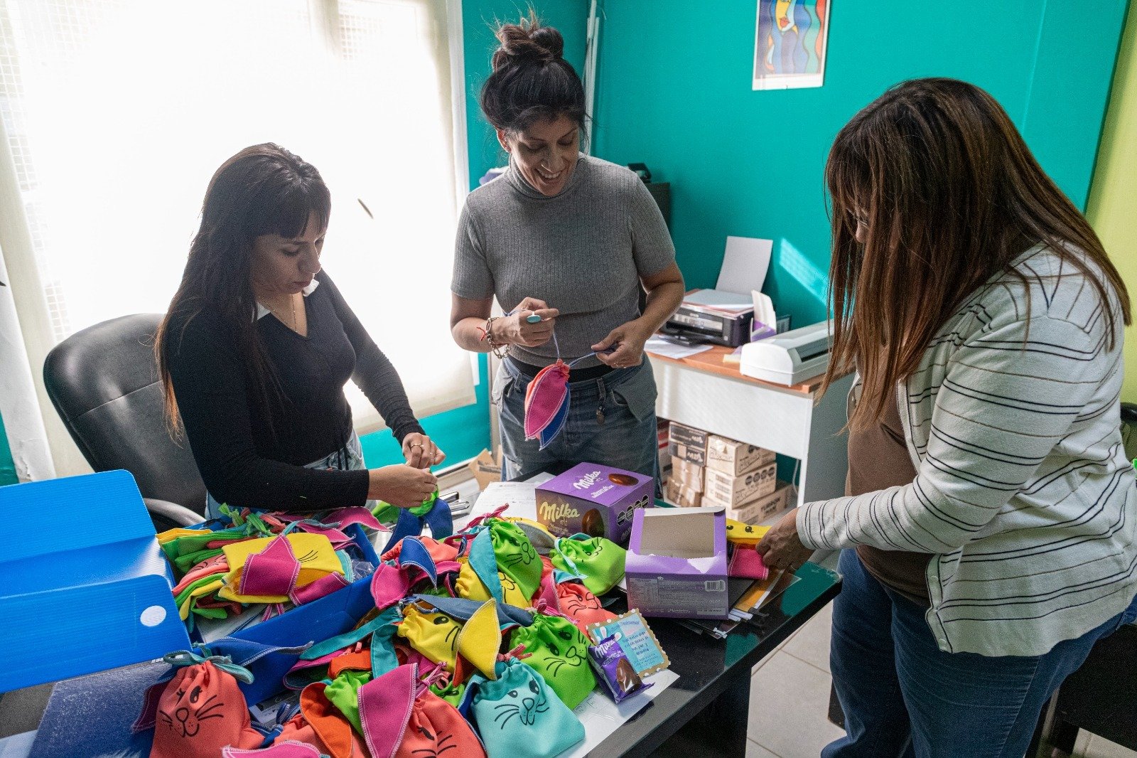 En el marco de las celebraciones por Pascuas, este miércoles el Municipio, a través del Centro de Promoción Laboral (CPL), llevó adelante la entrega de bolsitas sublimadas de Pascua y libros para colorear, elementos destinados a más de 80 niños y niñas que asisten a los Centros de Promoción Barrial (CPB) San Martín y Los Grillitos.