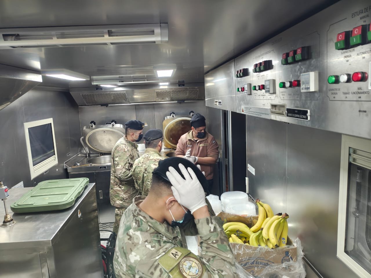 Los elementos dependientes de esta Gran Unidad de Combate brindan apoyo mediante la elaboración y distribución de 300 raciones diarias en distintos puntos de la ciudad,permanecen en apresto para realizar nuevas tareas en apoyo a la comunidad.
