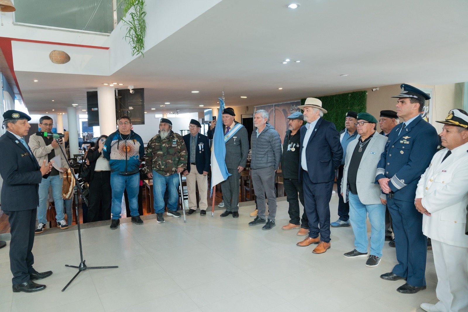 El acto contó con la presencia del intendente, Othar Macharashvili, miembros del gabinete, autoridades de las Fuerzas Armadas, representantes de la Unión de Ex Combatientes de Malvinas y vecinos de la ciudad, quienes acompañaron este significativo evento.