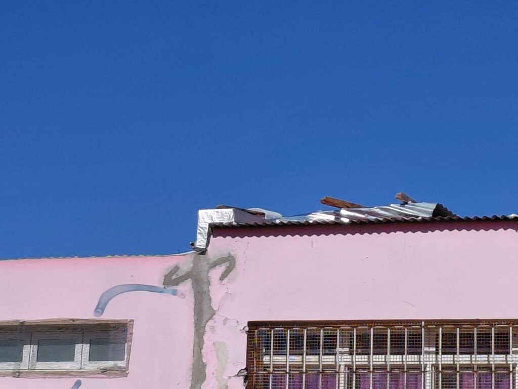 La institución de Km 8 sufrió el oso de las ráfagas de 150 km/h y quedó sin una parte del techo. Los alumnos no tendrán clases hasta que sea reparado el techado.
