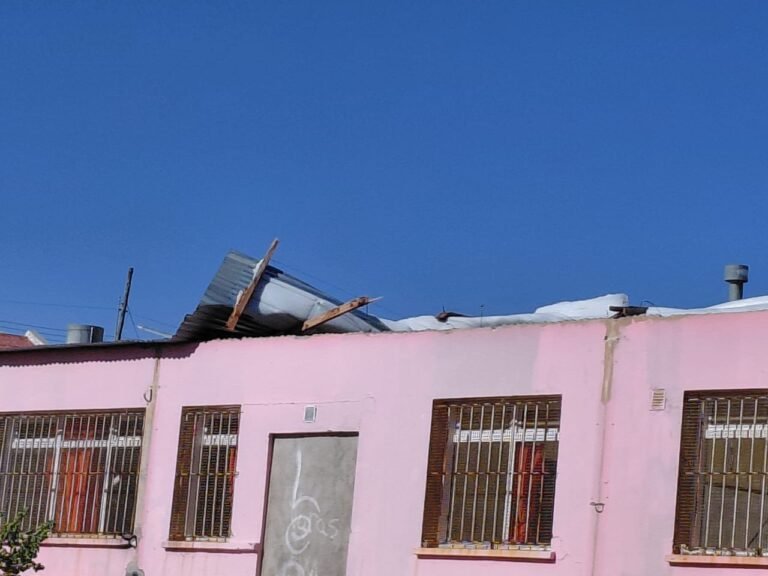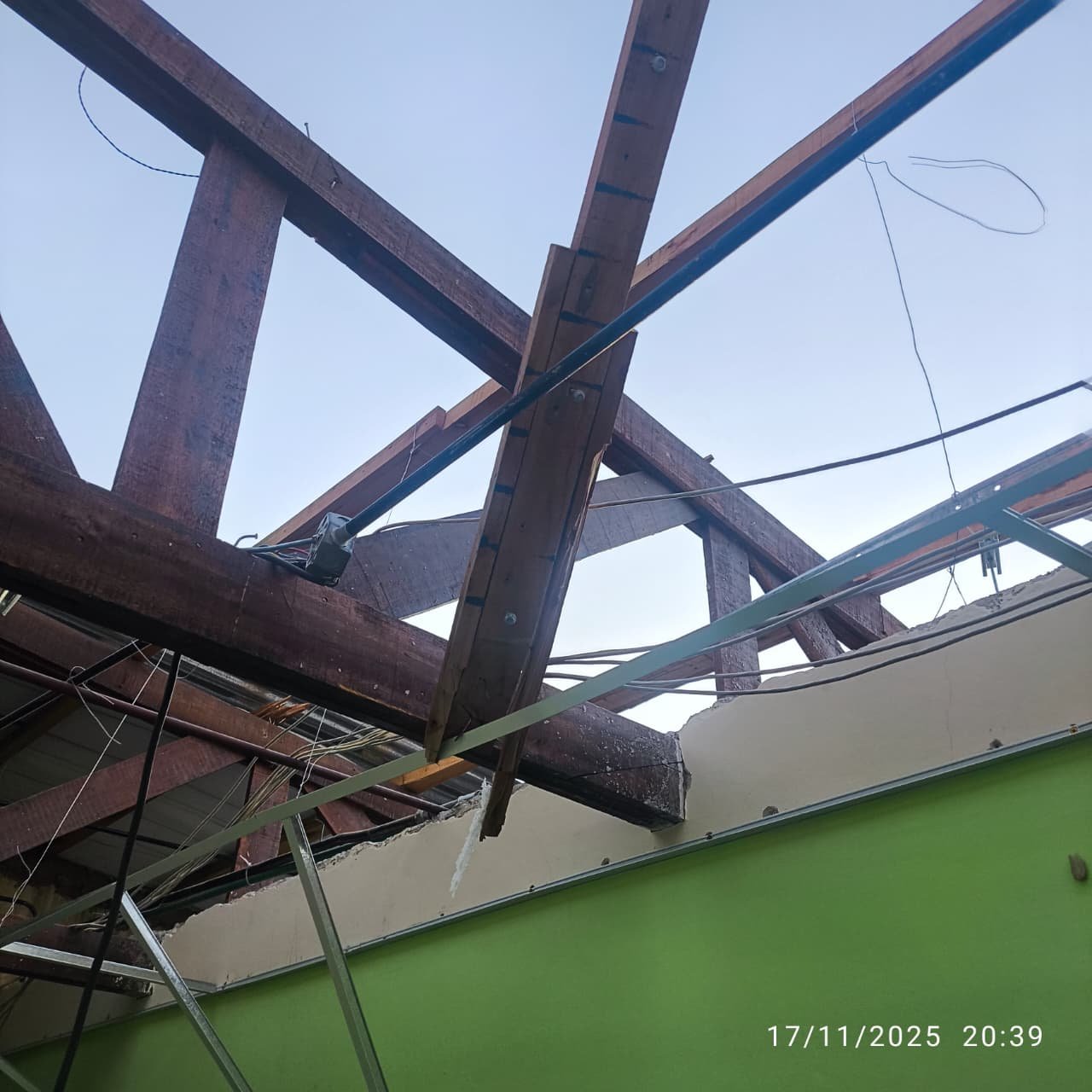 Este lunes por la tarde, un fuerte temporal de viento con ráfagas de 150 km/h azotó la zona, causando el desprendimiento del techo de la Escuela 7702 de Kilómetro 8.