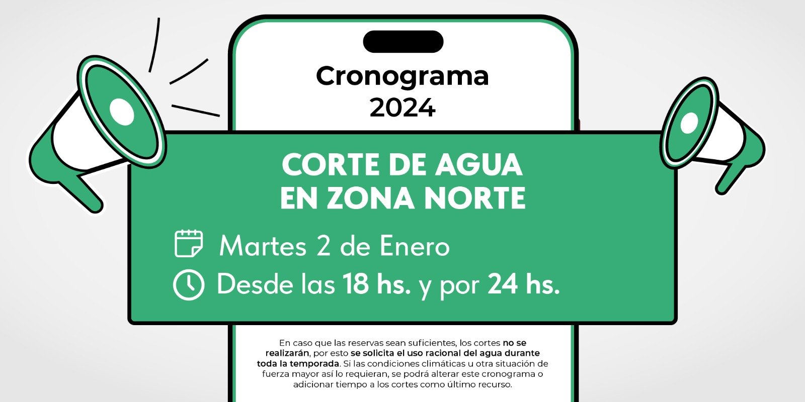 Debido a las altas temperaturas, este martes se llevará adelante un corte programado de agua por 24 horas desde las 18.