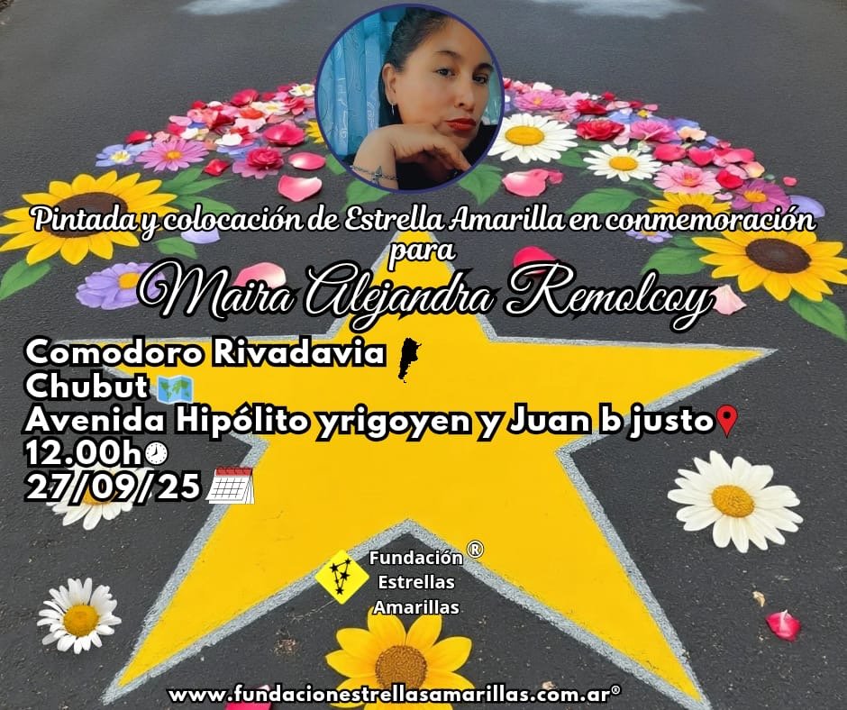 Luego a las 12:00 horas, en Avenida Hipólito Yrigoyen y Juan B. Justo, se llevará a cabo la ceremonia en conmemoración de Maira Alejandra Remolcoy.