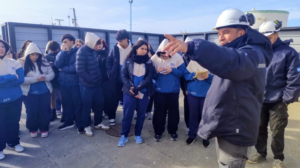 Alumnos de sexto año del Instituto María Auxiliadora realizaron una visita educativa al puerto de Comodoro Rivadavia. Durante la recorrida, los estudiantes pudieron interiorizarse sobre las distintas actividades que se desarrollan en el ámbito portuario, el proceso de reactivación del Astillero y conocer de primera mano las operaciones productivas, la infraestructura y el potencial de desarrollo del muelle local.