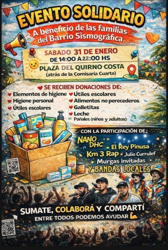 La organización invita a la comunidad a sumarse, colaborar y compartir en este evento solidario, con el objetivo de ayudar a las familias del barrio Sismográfica.