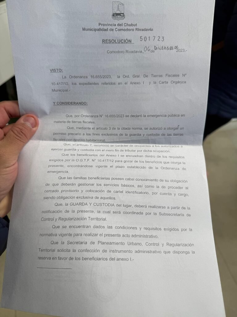 Son alrededor de 360 familias de la etapa 2 y 3 que recibieron la resolución de entrega los lotes el 6 de diciembre del 2023 por parte del entonces intendente Juan Pablo Luque.