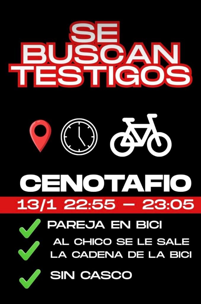 La justicia solicita la colaboración de la comunidad para identificar a una pareja (dos personas) que circulaba en bicicleta el 13 de enero entre las 22:55 y 23:05 horas en la zona del Cenotafio.