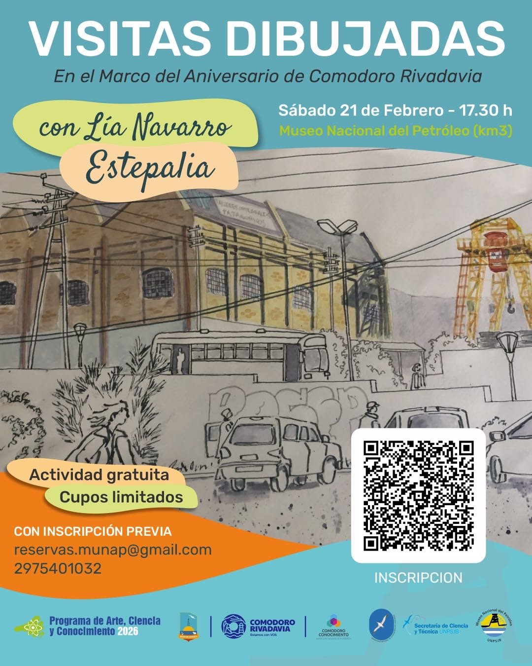 Así también, el Museo prepara una actividad especial para este sábado 21 a las 17.30 h. Se trata de “Visitas dibujadas” una propuesta que estará a cargo de la arquitecta y artista visual Lía Navarro “Estepalia” en la que el arte contribuye a observar y conocer la exhibición desde otra perspectiva. Mientra las y los participantes podrán ponerse manos a la obra con elementos sencillos como papel y lápiz, en un espacio de diálogo y creación. Para participar solo es necesario tener ganas de probar una experiencia distinta, aunque no se tengan mayores conocimientos de dibujo. Esta visita es parte del Programa Arte, Ciencia y Conocimiento en convenio entre la UNPSJB y la Agencia Comodoro Conocimiento-MCR. Para pre inscribirse se puede completar el formulario
