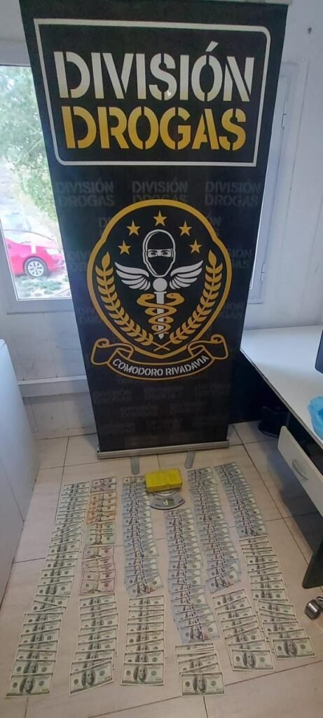 El avance clave de la causa se produjo en el acceso norte de Comodoro Rivadavia, donde los investigadores interceptaron una camioneta Toyota Hilux que transportaba un kilogramo de cocaína oculto en un compartimiento del vehículo. En el interior también se secuestraron 16 mil dólares estadounidenses. El conductor fue detenido en el lugar.