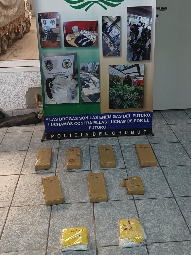 Como resultado del operativo, fueron detenidas seis personas mayores de edad —dos hombres y cuatro mujeres— identificadas como los principales distribuidores de estupefacientes en Puerto Madryn. Además, se incautaron siete ladrillos compactos de marihuana con un peso total de 6,5 kilos, un ladrillo de cocaína de un kilo y sustancias fraccionadas listas para su comercialización. También se secuestraron teléfonos celulares, balanzas de precisión, un millón de pesos en efectivo y cuatro vehículos que eran utilizados para el transporte y la distribución de la droga, junto a otros elementos de interés para la causa.