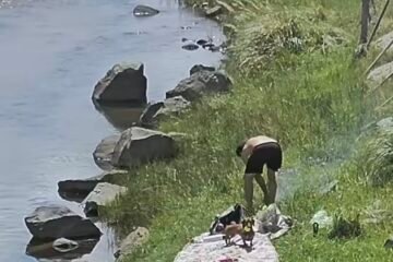 El texto reza de la siguiente manera : «Podemos observar en esta imagen el estado en que se encuentra el barranco del Chalet Huergo.