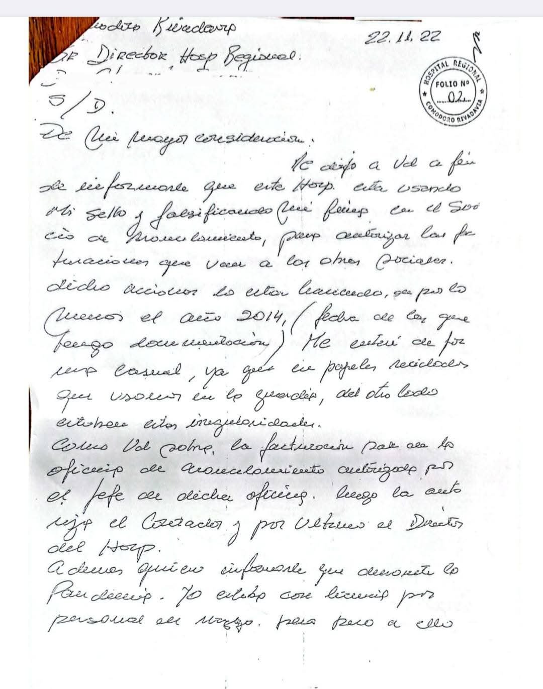 El documento también deja entrever un circuito administrativo deficiente, donde la presión por facturar prestaciones médicas generaba prácticas irregulares. “El presente descargo no pretende ser una defensa de la mala utilización del sello, por no contar con una autorización expresa”, reconoce la comunicación hospitalaria.