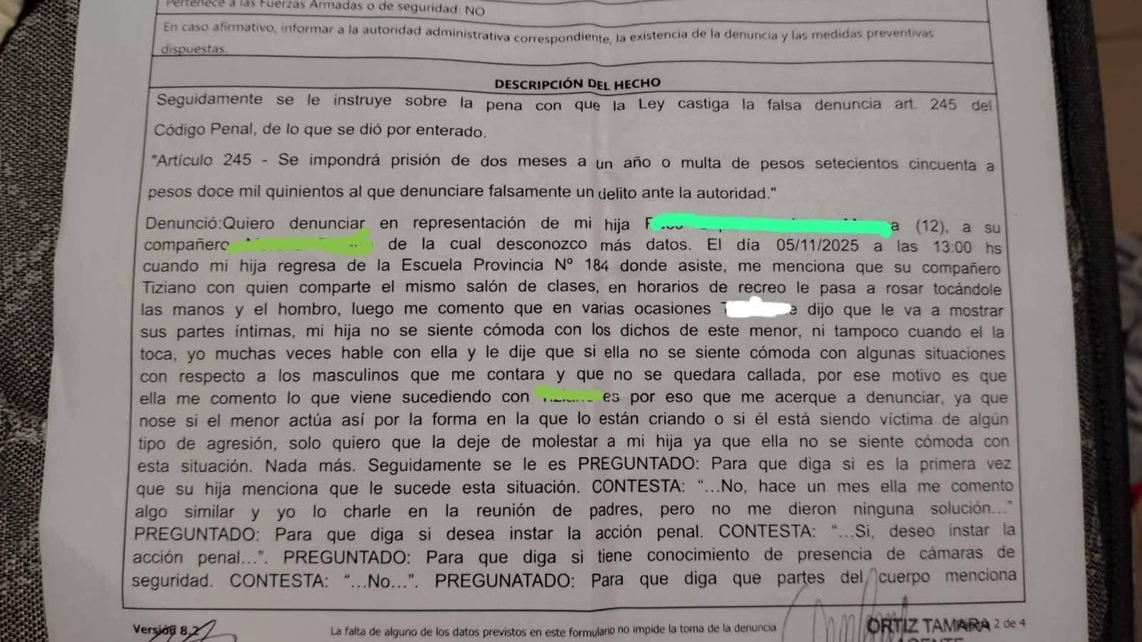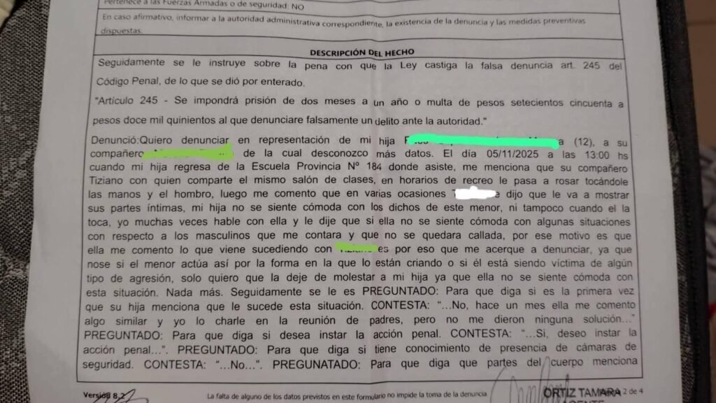 Una madre de un alumno de sexto grado de la Escuela Nº 184 del barrio San Martín denunció hechos de extrema gravedad que ocurren desde el regreso a las clases tras las vacaciones de invierno. La situación incluye acoso, hostigamiento en los baños de las nenas, agresiones físicas e incluso el ingreso de armas blancas, una picana eléctrica y balas por parte de dos menores.
