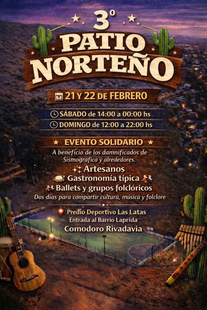 Llega el 3° Patio Norteño: dos días de cultura y solidaridad en Comodoro