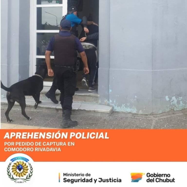 Un hombre de 30 años fue detenido en Comodoro Rivadavia por personal de la Sección Operaciones Policiales de la Policía del Chubut. Carlos Agustín T. fue identificado durante un control de rutina y se constató que sobre él pesaba un pedido de captura y detención vigente.