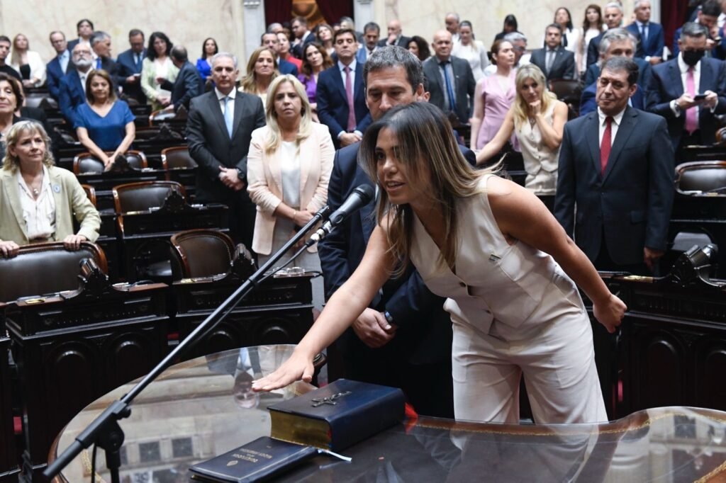En una sesión histórica en el Congreso de la Nación, Maira Frías juró hoy como Diputada Nacional por la provincia de Chubut, integrando el bloque de La Libertad Avanza, que se constituye como la primera minoría en la Cámara de Diputados con 95 miembros.