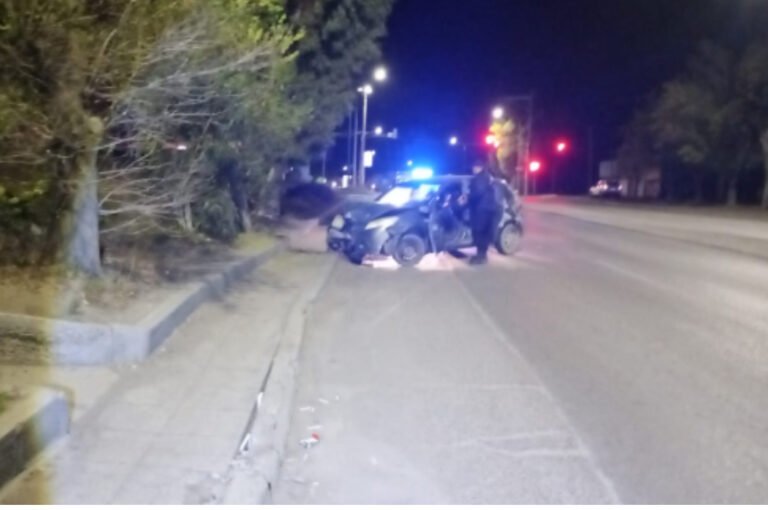 Personal de la Seccional Tercera se presentó en Av. Hipólito Yrigoyen tras un accidente vehicular. La conductora de un Renault Sandero, despistó y chocó contra un árbol.