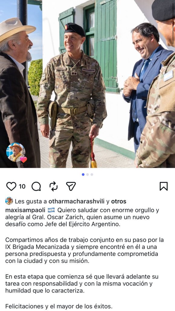 El intendente Othar Macharashvili y el viceintendente Maximiliano Sampaoli se hicieron eco de la noticia y saludaron al nuevo Jefe del Ejército Argentino y le desearon el mayor de los éxitos recordando su paso hasta este momento en la ciudad de Comodoro Rivadavia.
