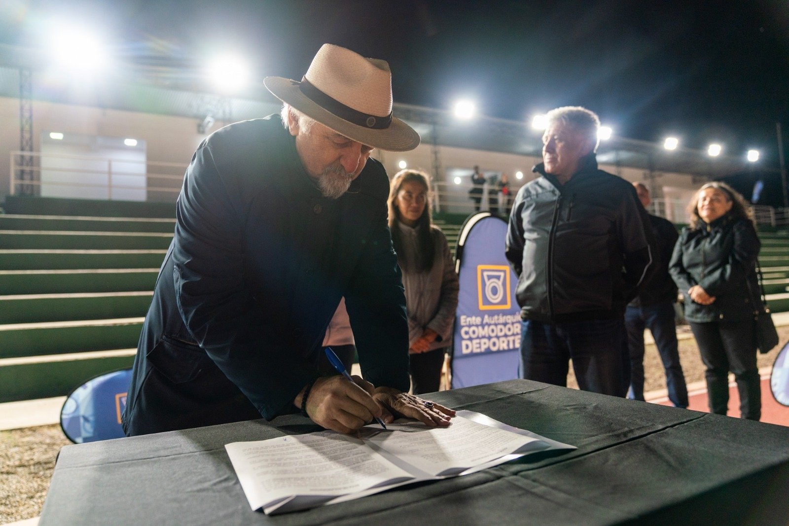 Este viernes por la noche, el intendente Othar Macharashvili junto al titular de Comodoro Deportes, Hernán Martínez, concretó la inauguración de la primera etapa de iluminación de la pista de solado sintético, infraestructura deportiva que llevará el nombre del reconocido atleta local “Eduardo Nicolás Bernal”. Esta obra largamente esperada por la comunidad deportiva local, permitirá ampliar los horarios de uso y fortalecer el desarrollo del atletismo en la ciudad.