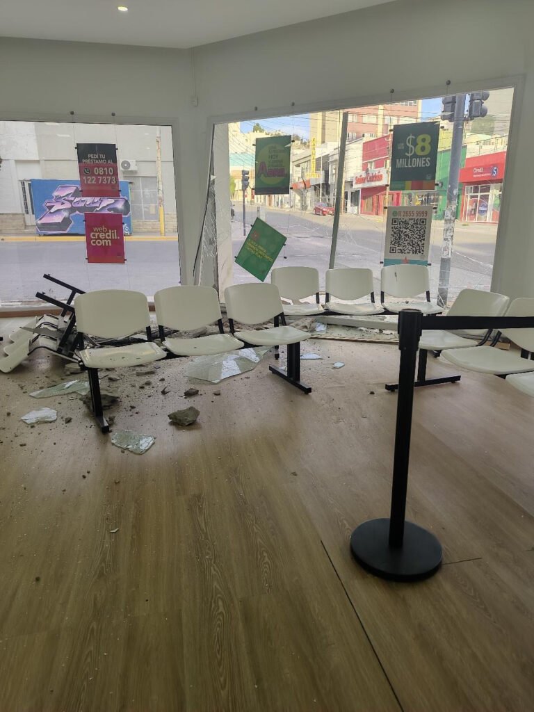 El vehículo fue secuestrado por falta de documentación, mientras que en el lugar quedó un empleado policial en custodia hasta la llegada de los responsables del comercio, quienes se hicieron presentes a media mañana para evaluar los daños ocasionados.