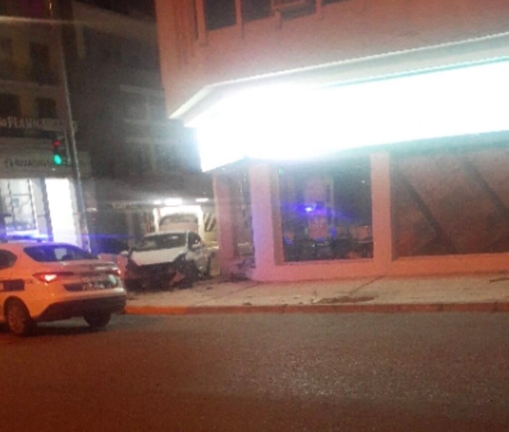 Un automóvil con cuatro ocupantes impactó contra el frente de la financiera Credil este lunes alrededor de las 5.30 horas, en la intersección de Italia y San Martín, en el centro de Comodoro Rivadavia.
