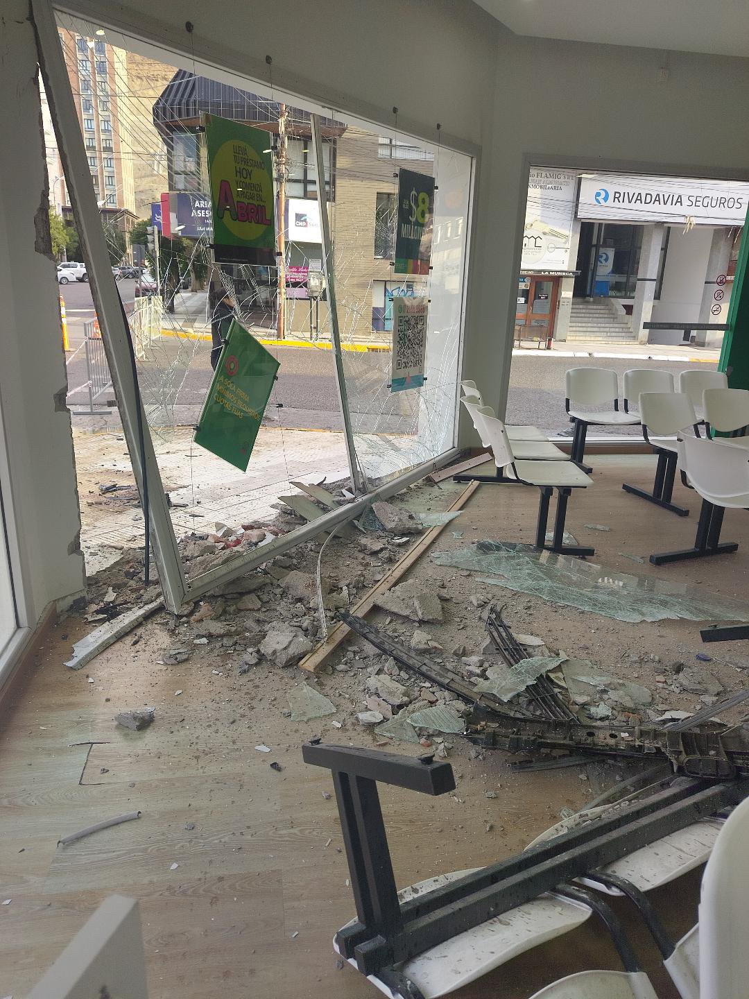 Un automóvil con cuatro ocupantes impactó contra el frente de la financiera Credil este lunes alrededor de las 5.30 horas, en la intersección de Italia y San Martín, en el centro de Comodoro Rivadavia.