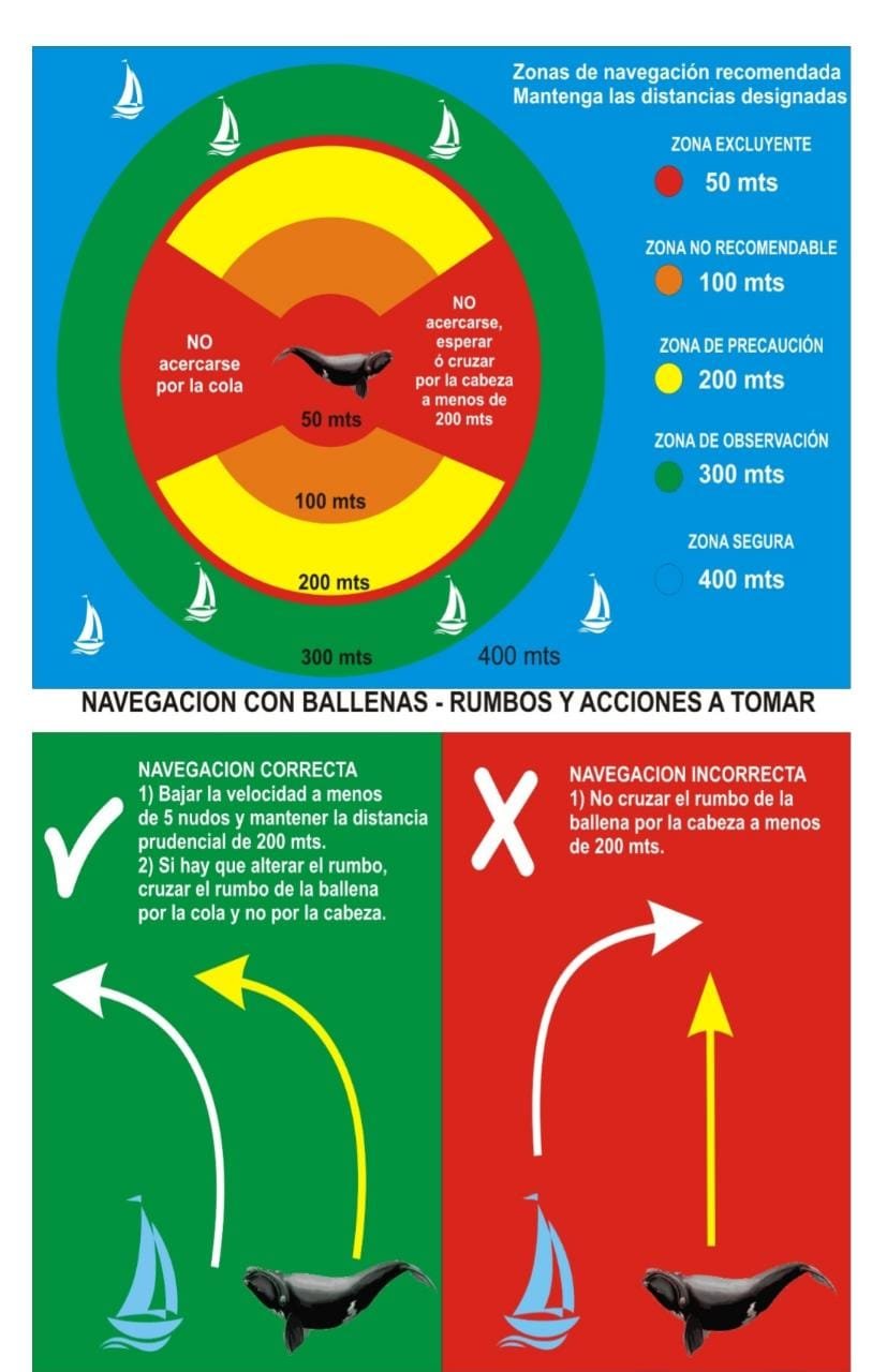 • Distancia mínima: Se debe mantener una distancia mínima de 200 metros respecto a cualquier cetáceo.