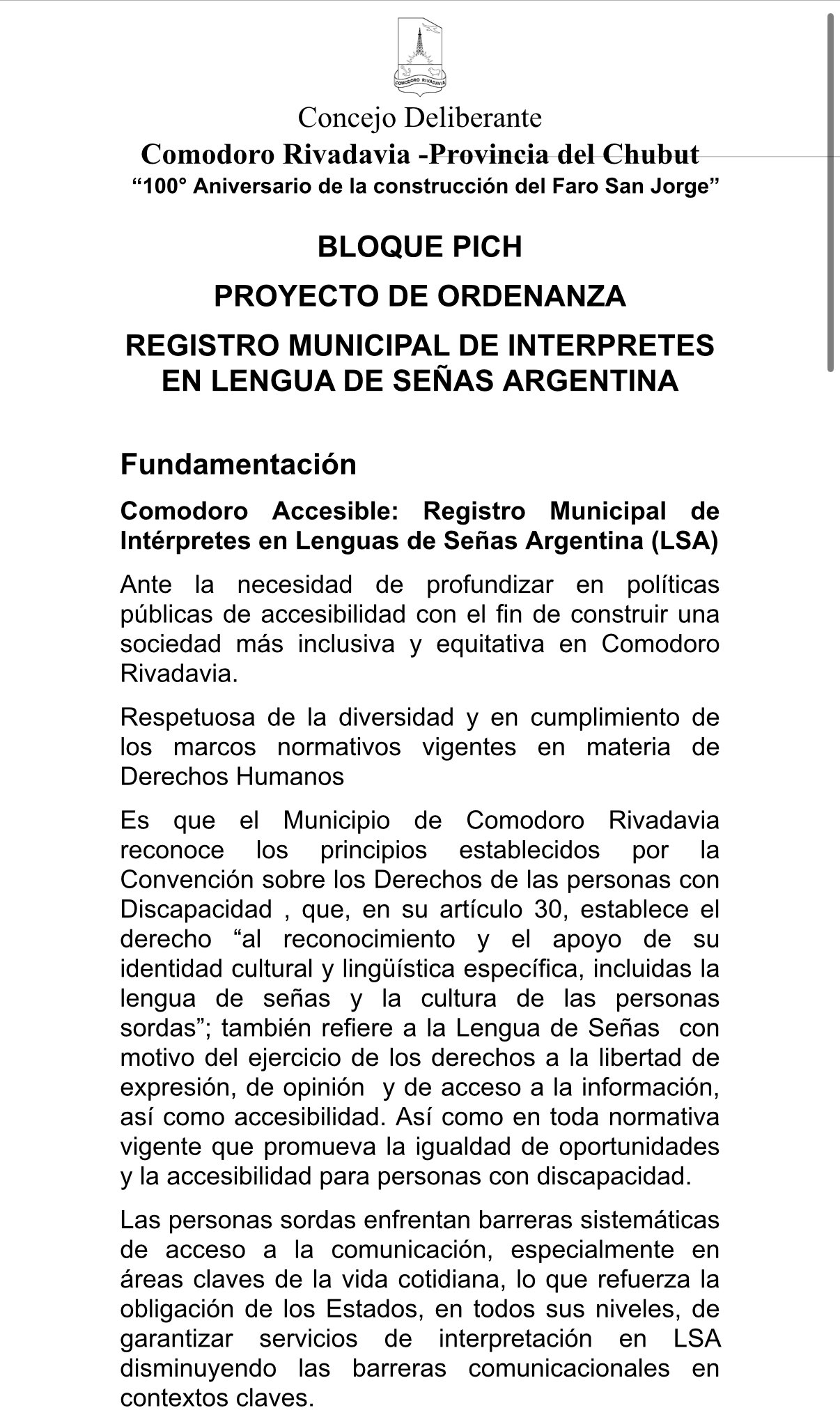 El mismo fue presentado por el Concejal Pmar Lattanzio y busca que la ciudad dé un paso más hacia la construcción de una sociedad más inclusiva y equitativa, reconociendo la importancia de la accesibilidad y el respeto por la diversidad.