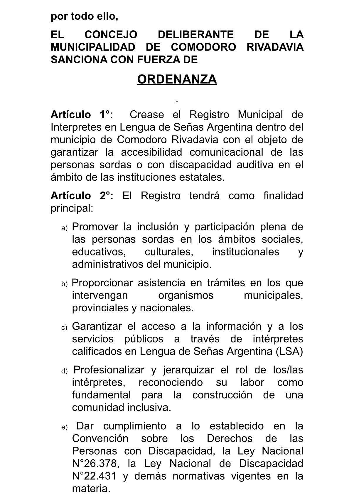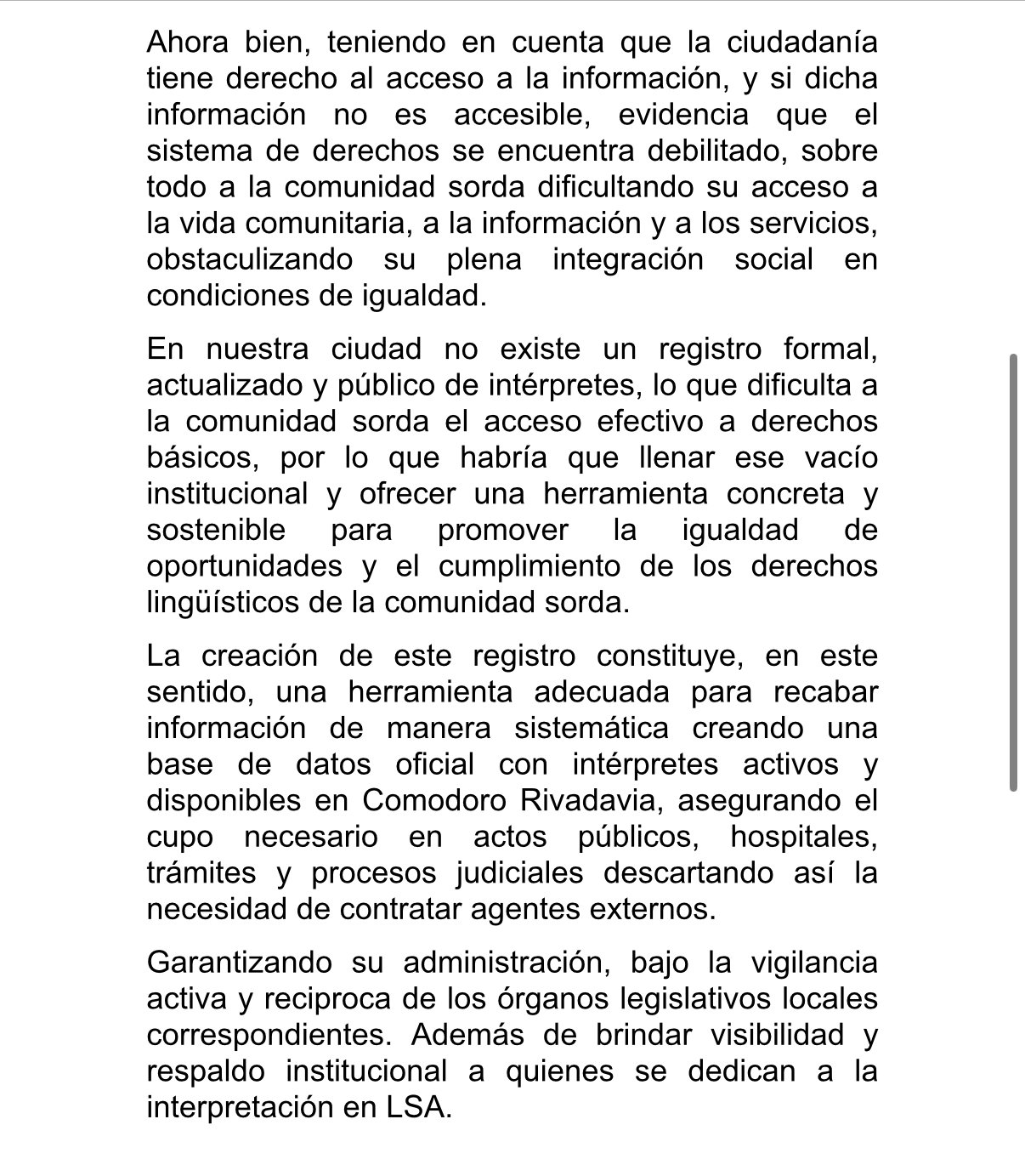 La creación de este registro constituye una herramienta concreta y sostenible para disminuir las barreras comunicacionales y fomentar la integración social en condiciones de igualdad para la comunidad sorda en Comodoro Rivadavia..