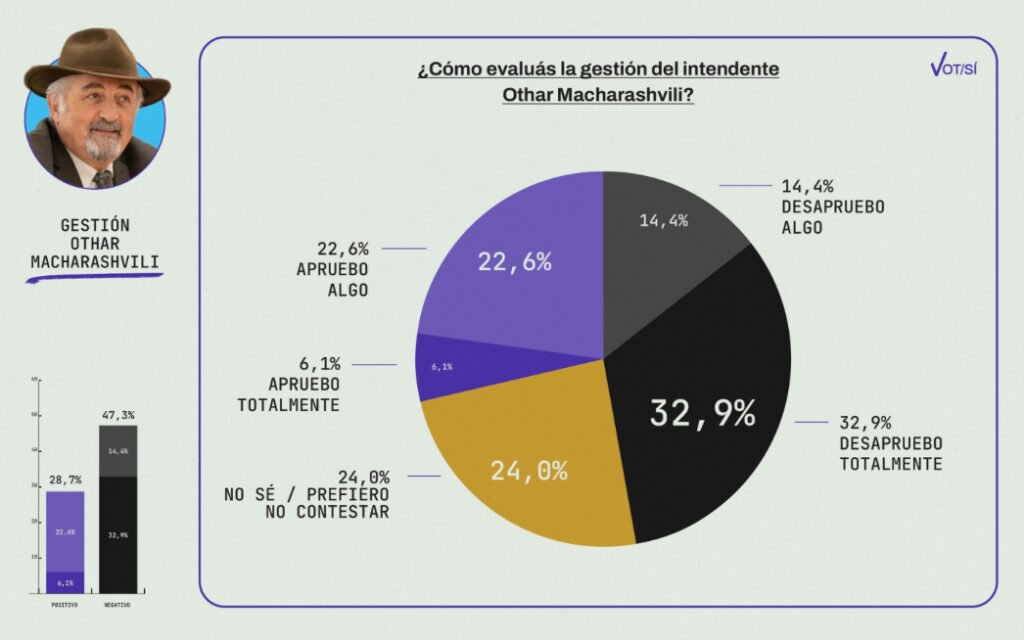 Othar Macharashvili no alcanza el 30% de aprobación con un diferencial negativo enorme. Curiosamente en esta pregunta el número de personas que deciden no opinar crece exponencialmente: alcanza casi el 25% por ciento.