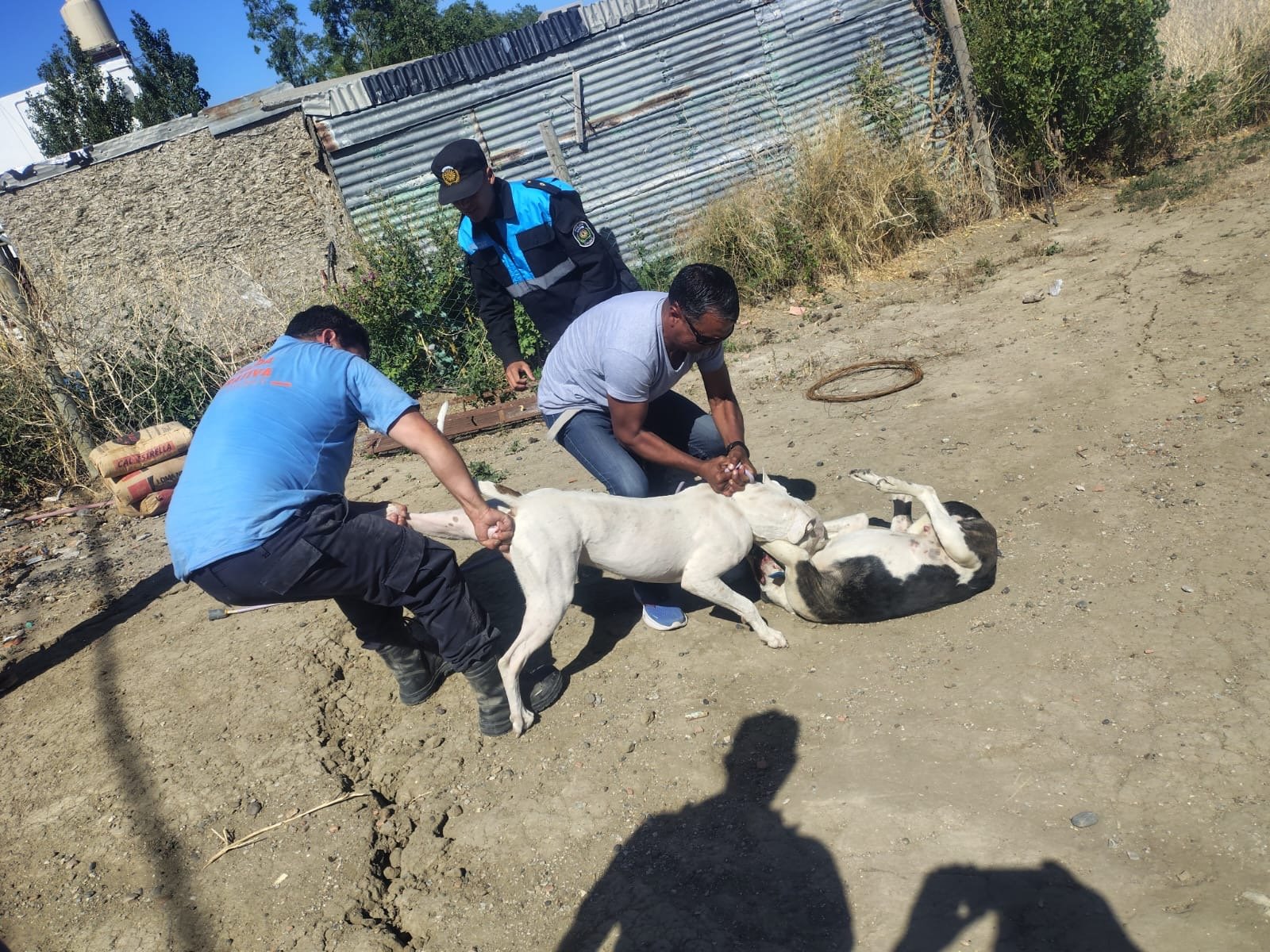 Uno de los perros estaba confinado en una habitación pequeña y había atacado salvajemente a otro animal que se encontraba en el patio y allí tuvieron que intervenir para separarlos.